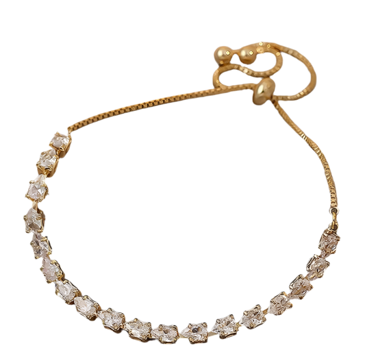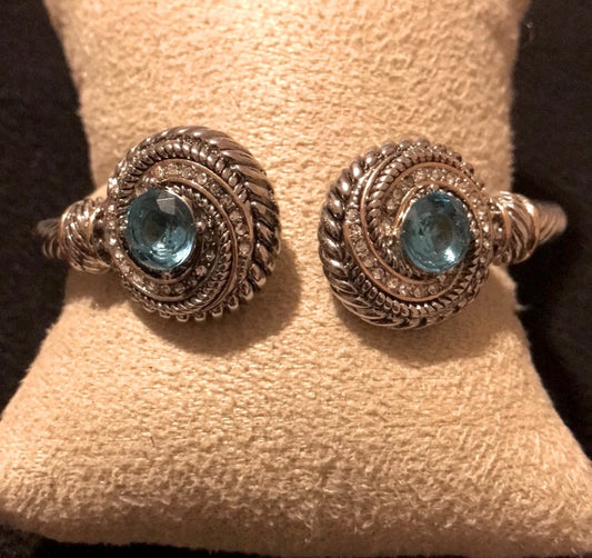 Bracelet CZ and aquamarine stone two tone stainless steel bangle